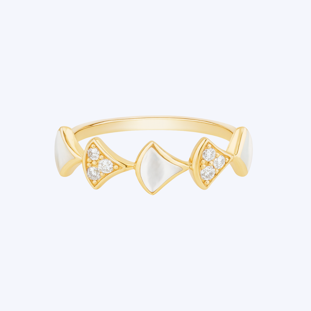 Geometric Diamond and Mother of Pearl Inlay Ring
