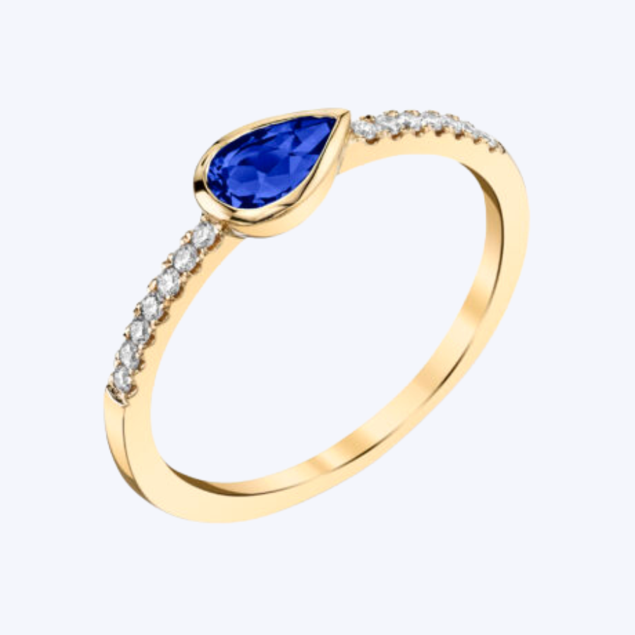 Bezel Set Pear Cut Sapphire & Diamond Ring