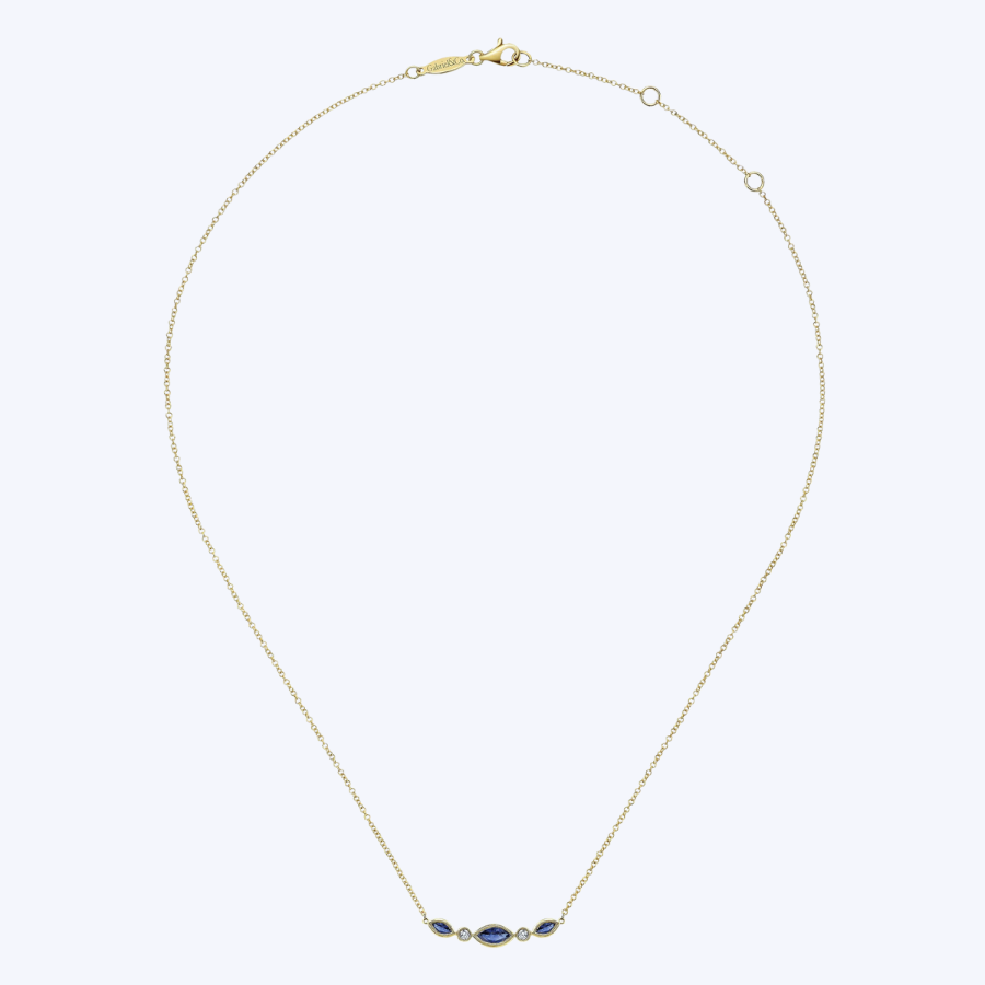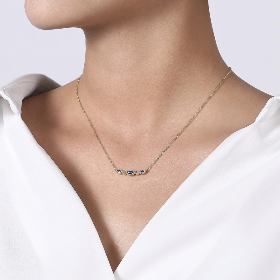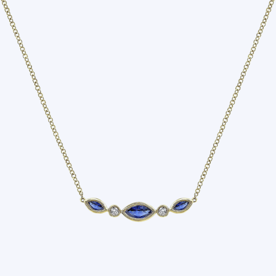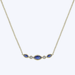 Marquise Shape Sapphire & Bezel Set Diamond Bar Necklace