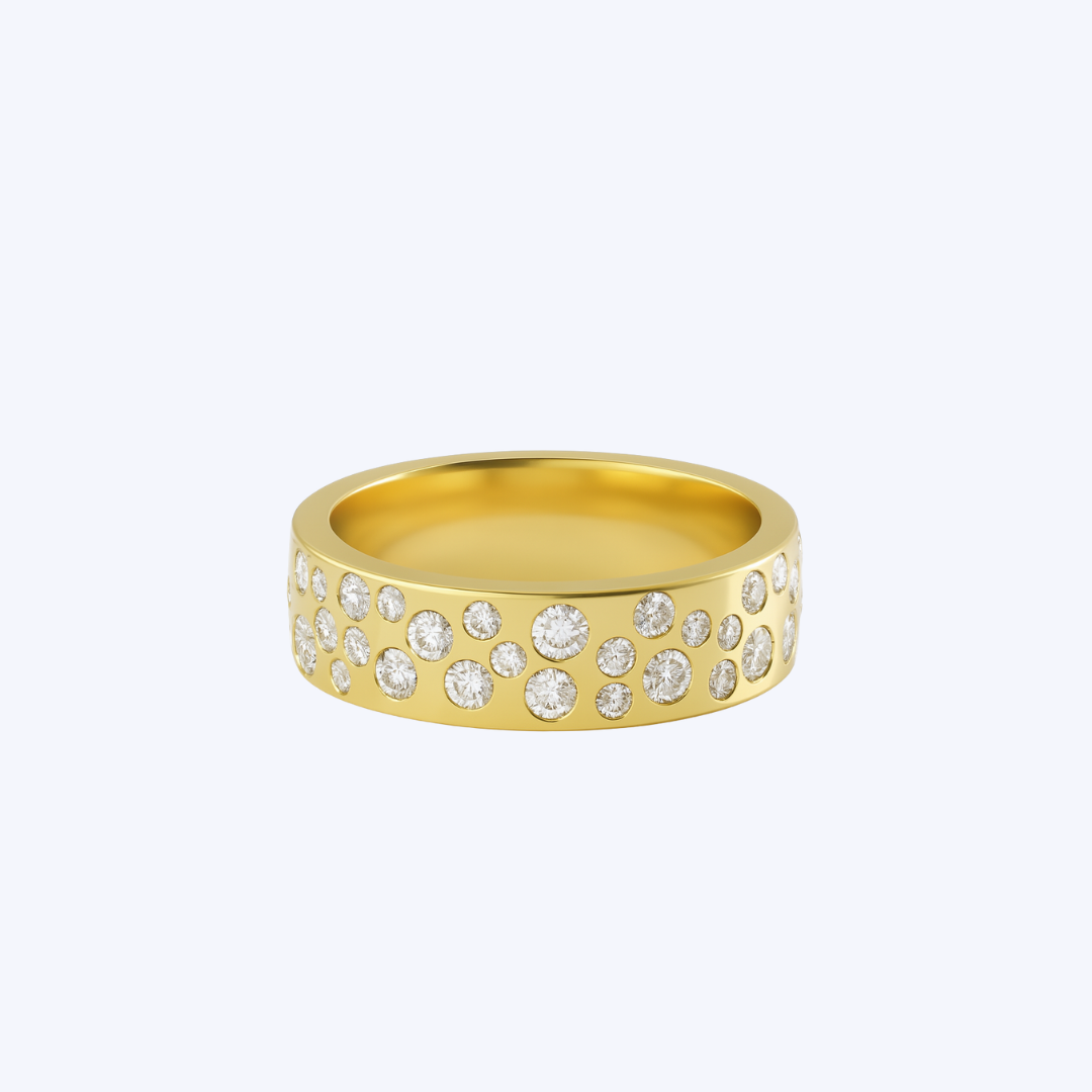 Stackable rings feature designs specifically engineered for comfortable multiple-ring wear, with uniform band widths and complementary profiles that nest together seamlessly. Construction utilizes consistent sizing and smooth surface finishes that prevent catching or uncomfortable pressure points when worn in combination. These pieces often incorporate continuous patterns or graduated elements that create cohesive visual flow when stacked. Highland Diamond's stackable ring collection combines thoughtful engineering with elegant design elements, crafted with superior metalwork for comfortable, coordinated luxury.