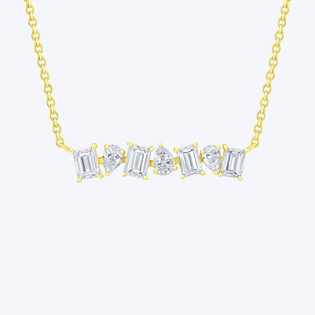Baguette and Pear Diamond Bar Necklace