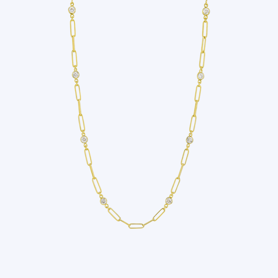 Bezel-Set Diamond Paperclip Necklace