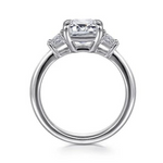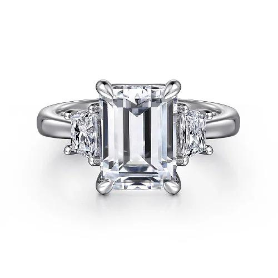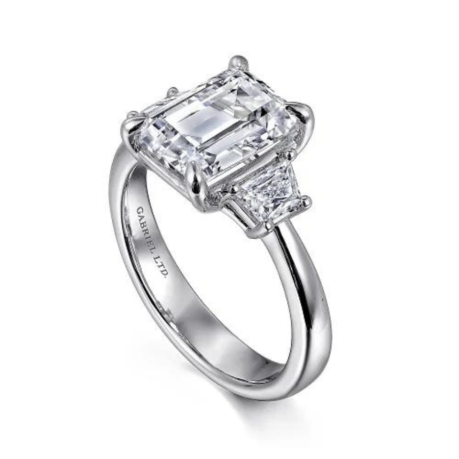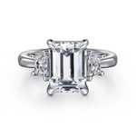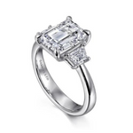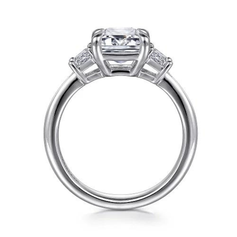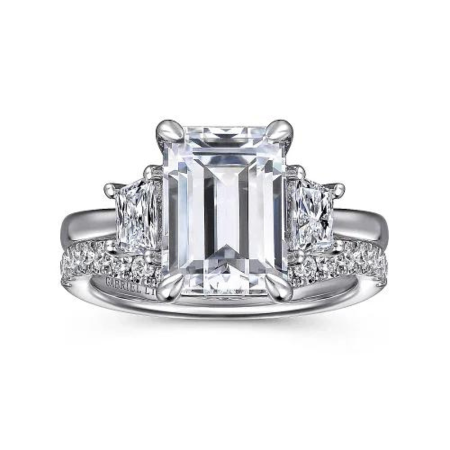 This Gabriel & Co. engagement ring setting features an emerald cut diamond with emerald cut side stones.