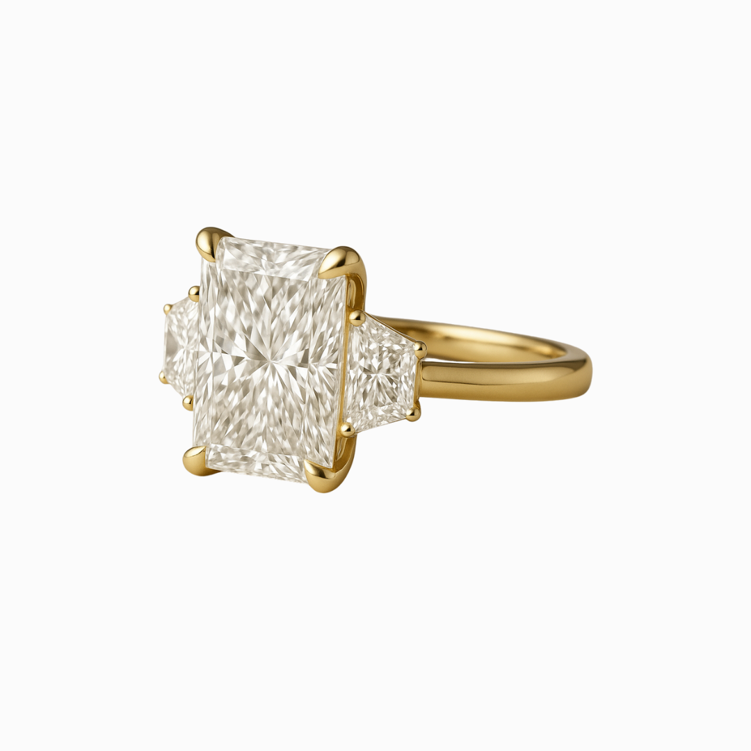 Radiant Cut Lab-Grown Diamond with Trap Side Diamonds