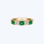 Alternating Round Diamond and Cushion Cut Emerald Anniversary Band