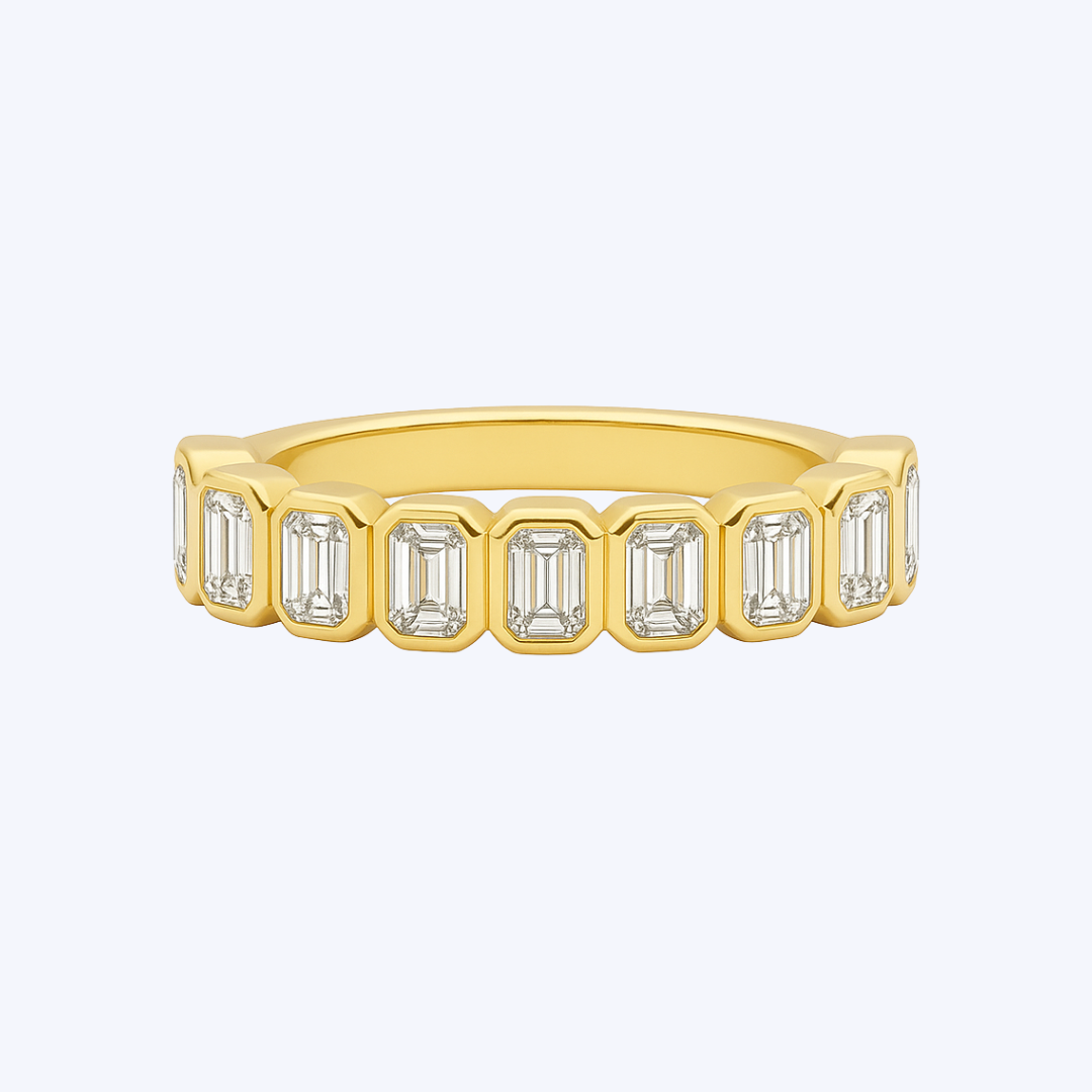 Bezel Emerald-Cut Diamond Semi-Eternity Band