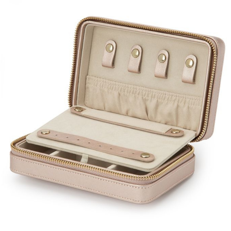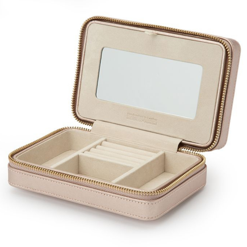 Charming and sophisticated, Palermo takes cues from its namesake city on the side of a mountain by the sea. Store your favorite pieces in this sumptuous leather zip case while traveling. Includes LusterLoc™ anti-tarnish lining and gold finish.