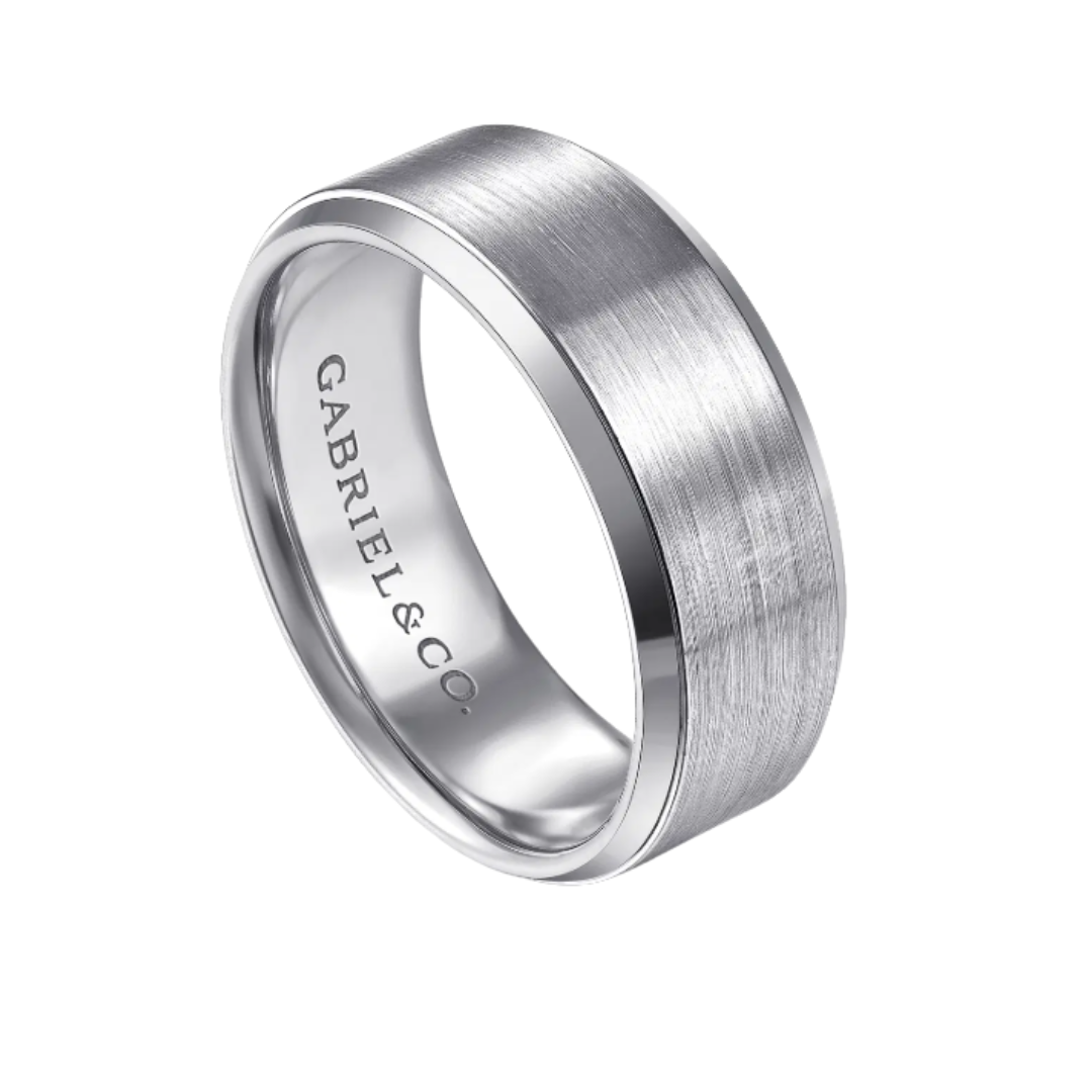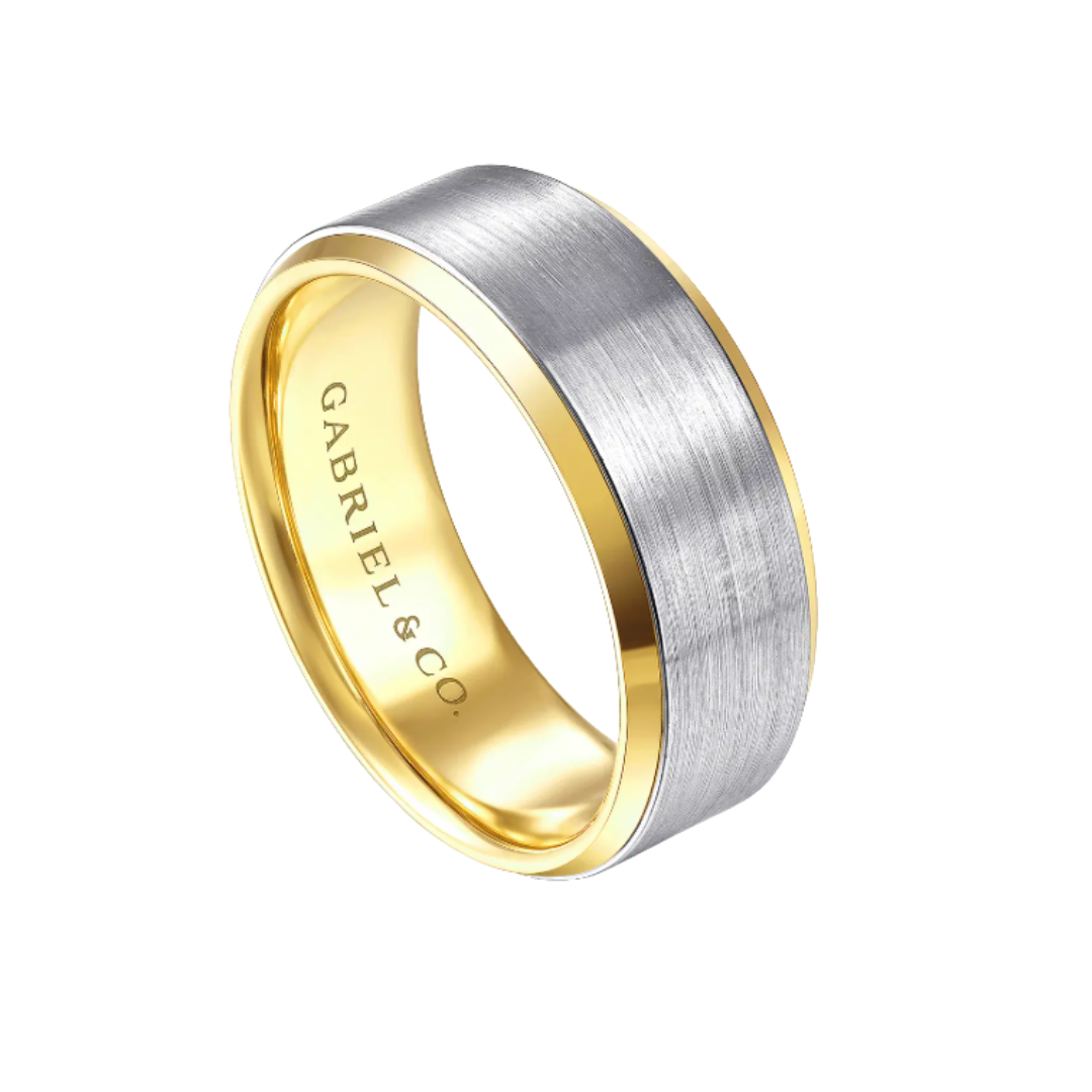 Alexander 8mm Two Tone Beveled Edge Men's Wedding Band in Satin Finish