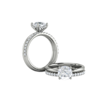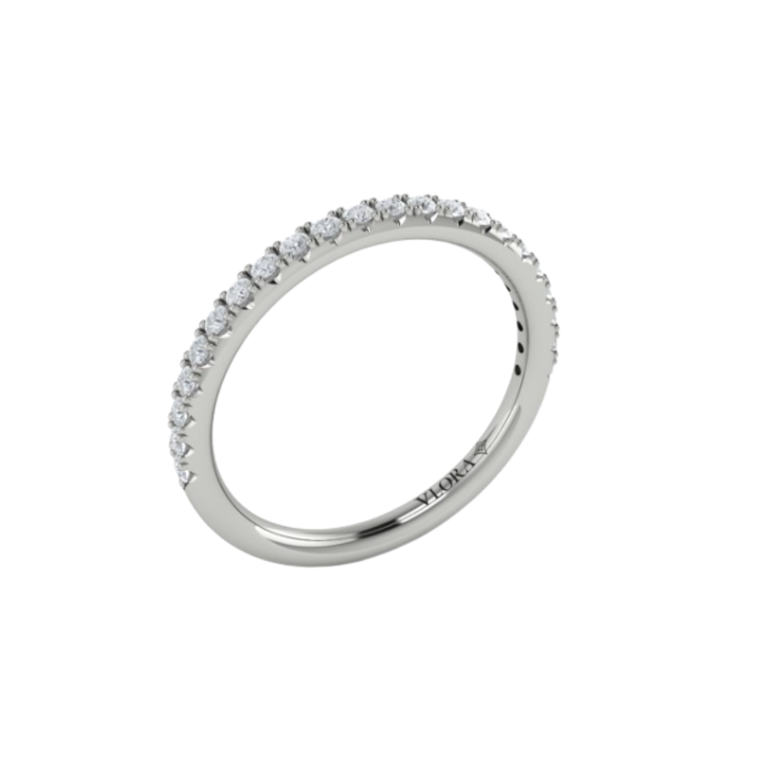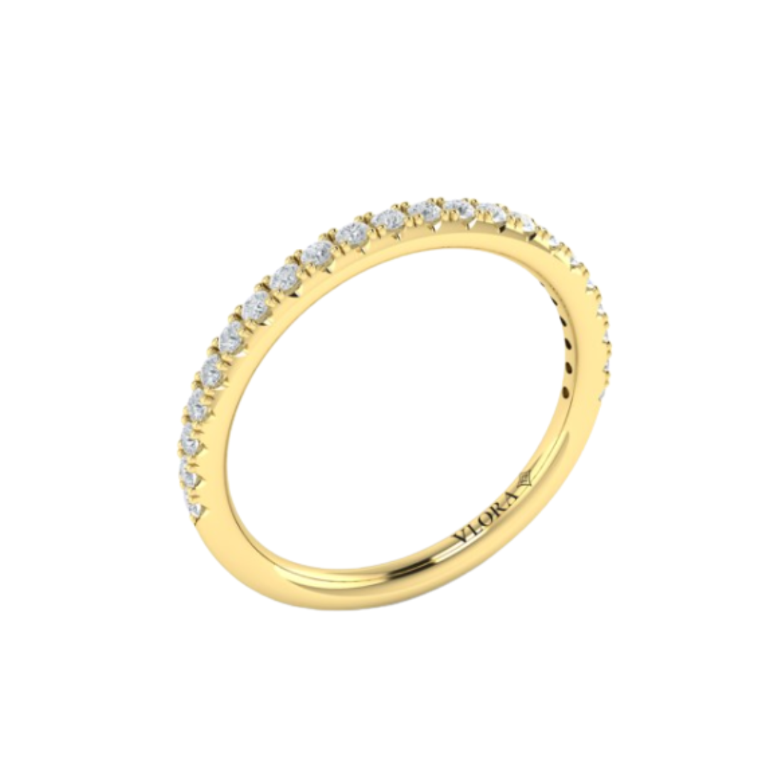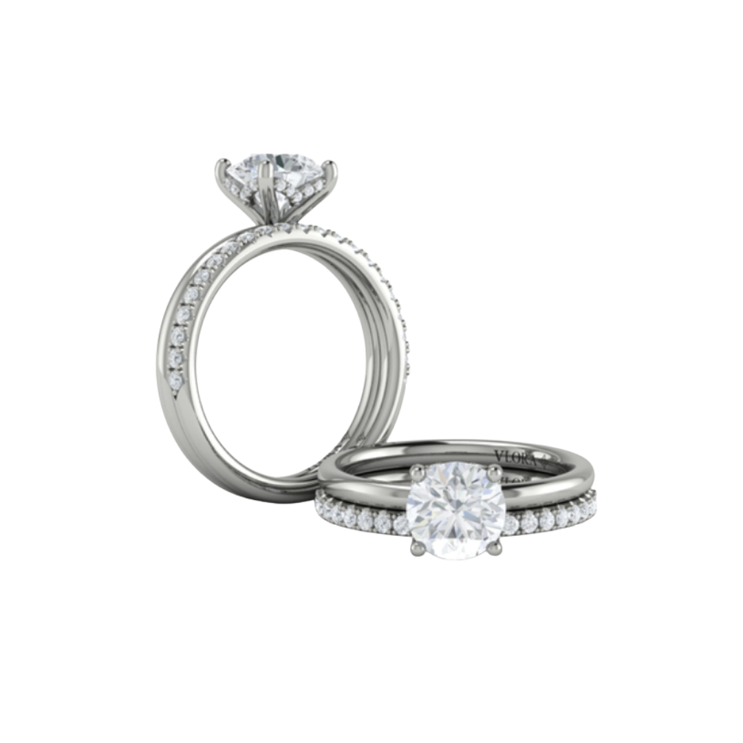 Matching Band for White Gold or Yellow Gold Classic Solitaire Engagement Ring. Experience the essence of love in a single brilliant moment. This classic solitaire engagement ring captures the heart with a round center diamond elevated in Vlora's signature V-shaped setting. Beneath the sparkle, a hidden halo of diamonds adds secret sparkle to every gesture. The delicate band, a testament to refined craftsmanship, symbolizes the unending circle of lasting romance. Celebrate your commitment with this classic diamond engagement ring destined to shine through the chapters of your love story.