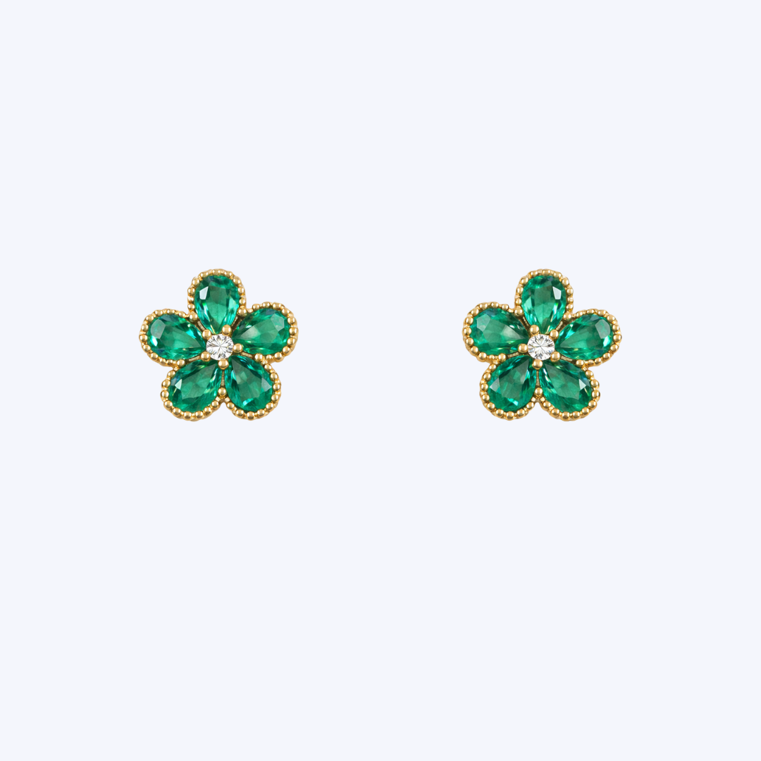 Jardin Flower Diamond and Emerald Stud Earrings