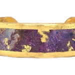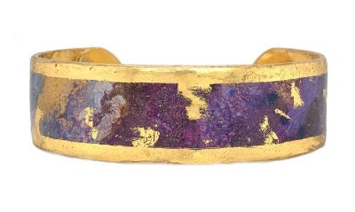 Enchanted is the perfect word to describe this mystical painting by Abbi Custis. A storm of dark violet, lilac and lapis lazuli drifts across these lovely cuff.